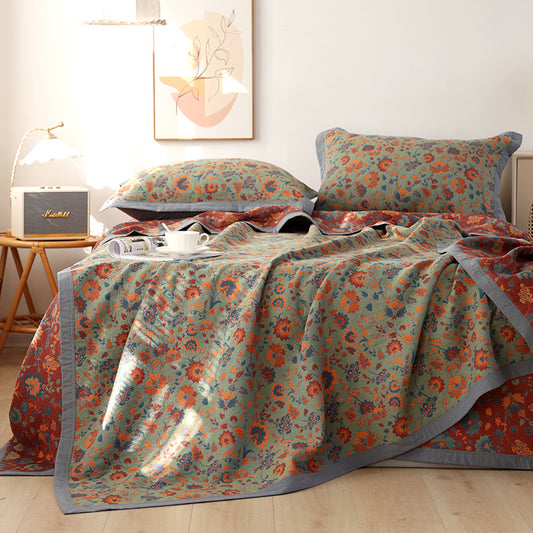 Ensemble 3 pièces couvertures de lit et 2 taies d'oreiller en gaze de coton.