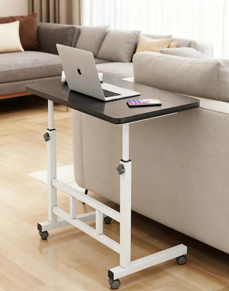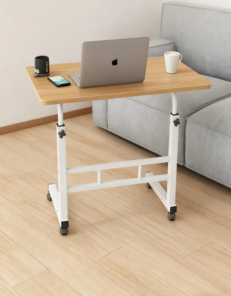 This mobile desk is ideal for those who have little space in their home, or simply need a place to work or study. Thanks to its rotating tires, you can easily move it anywhere in your house, either in the living room or next to the bed. In addition, you can place the insurance on the rims to keep the desktop in place. Its adjustable height makes it practical and usable for all ages, from children to adults.