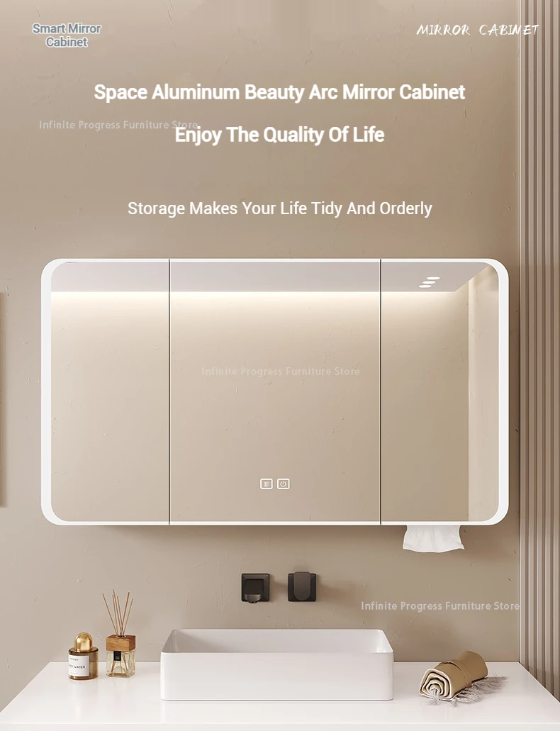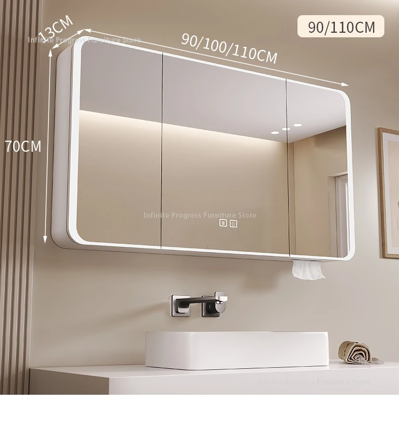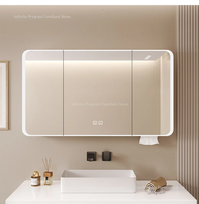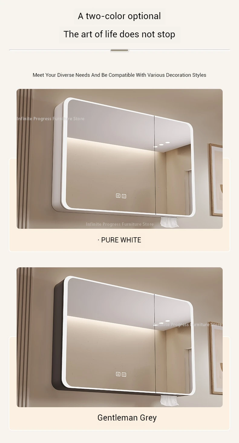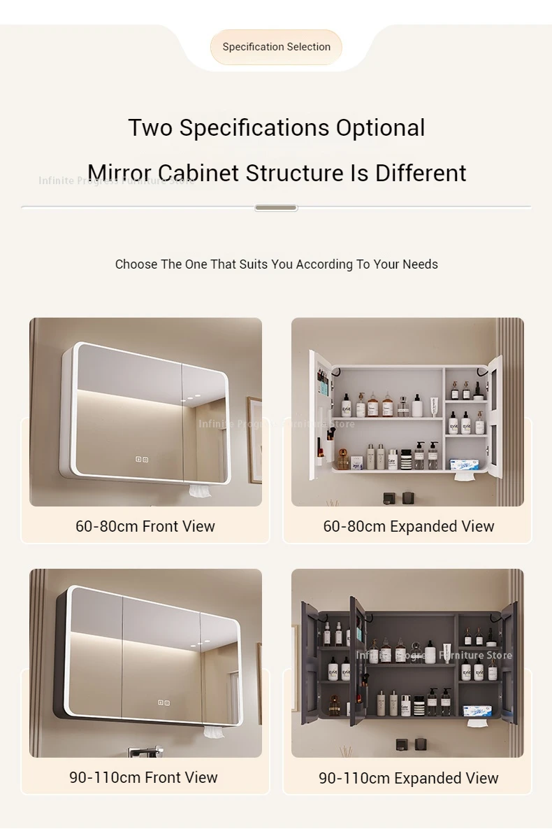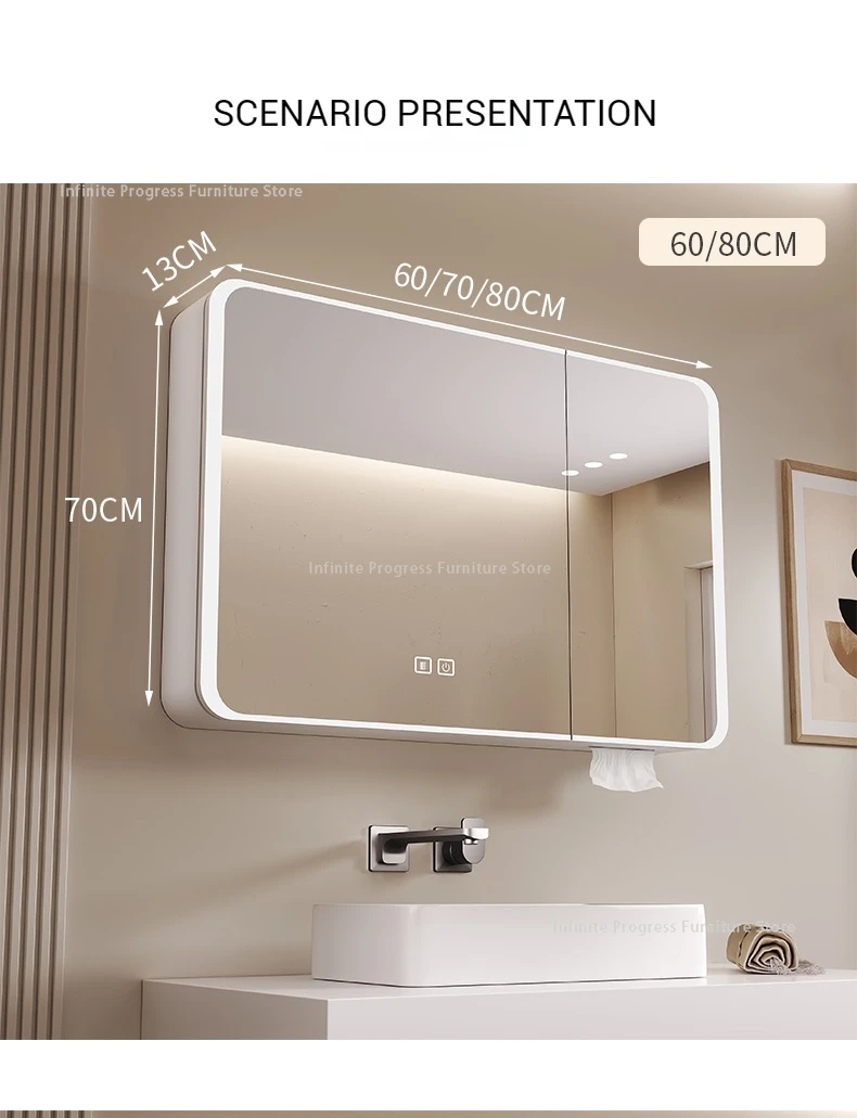 This intelligent 80cm bathroom mirror with LED lighting and storage cabinets is made of durable aluminum alloy and features a modern design. It is self-contained and easy to install. Originating from Mainland China, this mirrored cabinet is a high-quality addition to any bathroom.