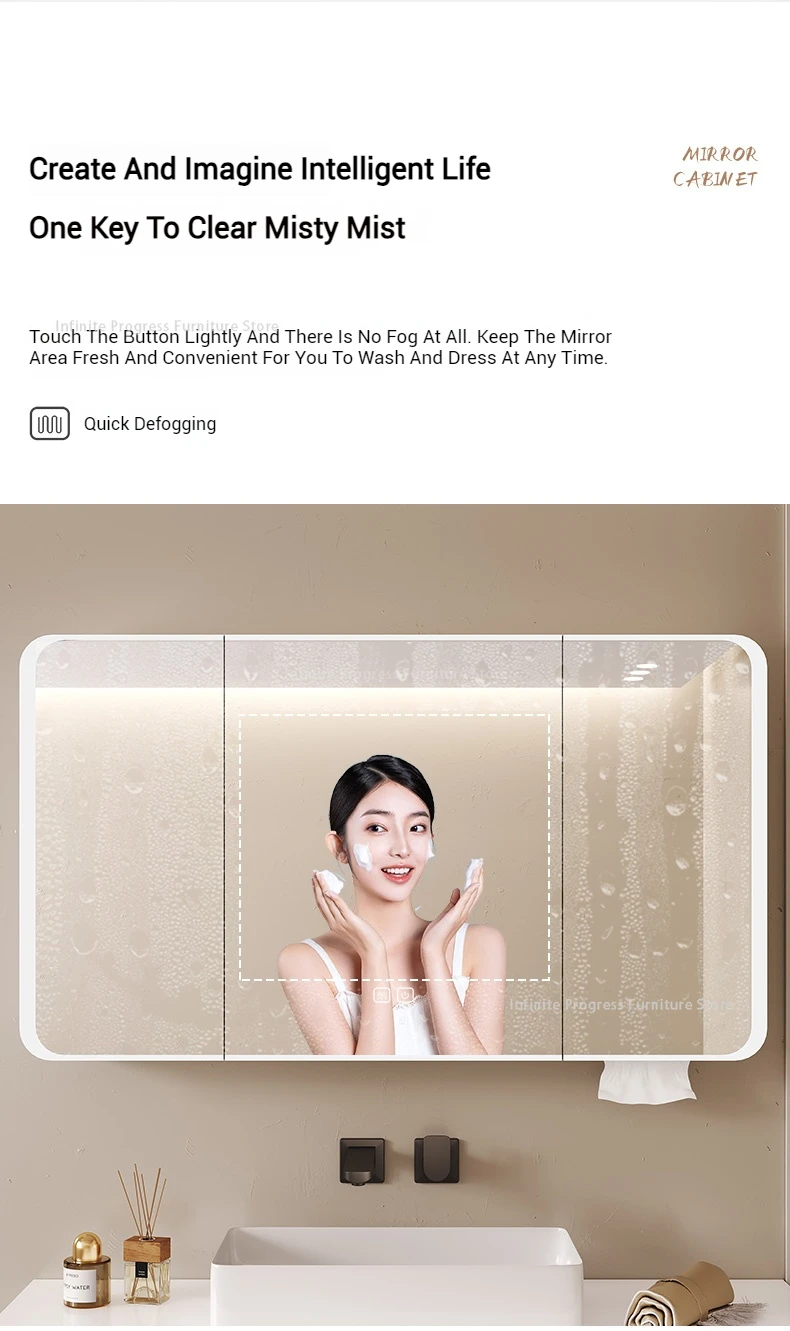 Miroir de salle de bain intelligent avec LED, 80cm avec placards de rangement .