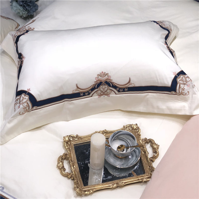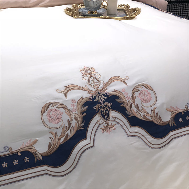 Parure de lit 4 pièces en coton brodé.
