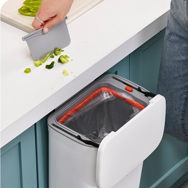 Poubelle miniature pour cuisine. Kitchen Sliding Cover Trash Can Wall-Mounted.