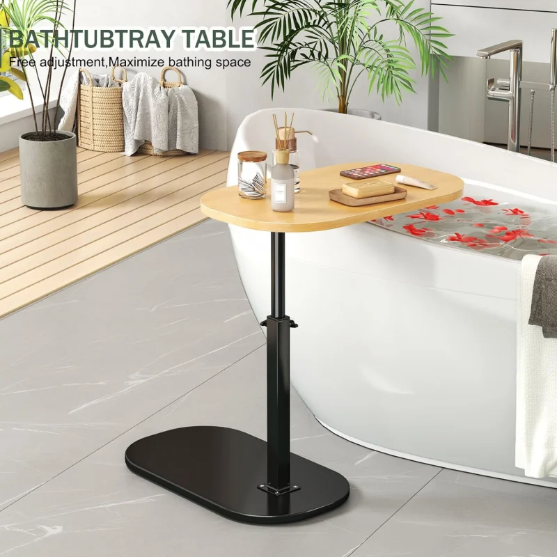 2.Our tray table usually need a support point, such as propped up on the edge of the bathtub or the couch arm.With its unique landing design, this small side table is perfect for small spaces.