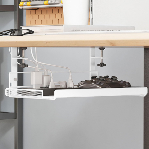 Plateau de gestion des câbles sous le bureau sans perçage – organisateur en acier pour fils, multiprises et chargeurs