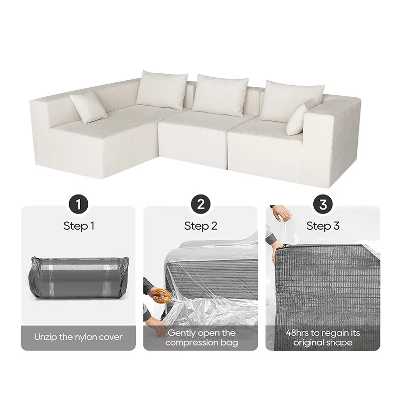 Ce canapé modulable 4 places de couleur blanc est le choix parfait pour un intérieur moderne, avec son style scandinave alliant à la fois modernité et élégance. Sa fabrication en tissu composite et son rembourrage en mousse offre un confort optimal et facile à entretenir, sans besoin de repassage. Son design en forme de L permet une installation facile et sans outils supplémentaires. Ce canapé est également disponible en d'autres couleurs pour s'adapter à tous les styles de décoration, parfaite pour ajouter une touche américaine à votre décor de maison moderne minimaliste. Dimensions 280x175x65