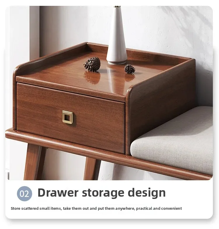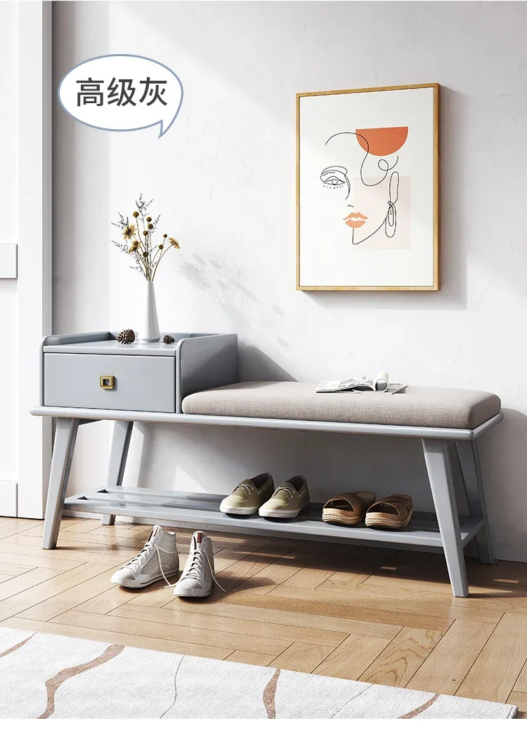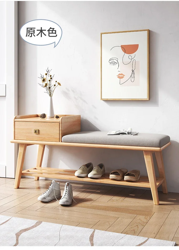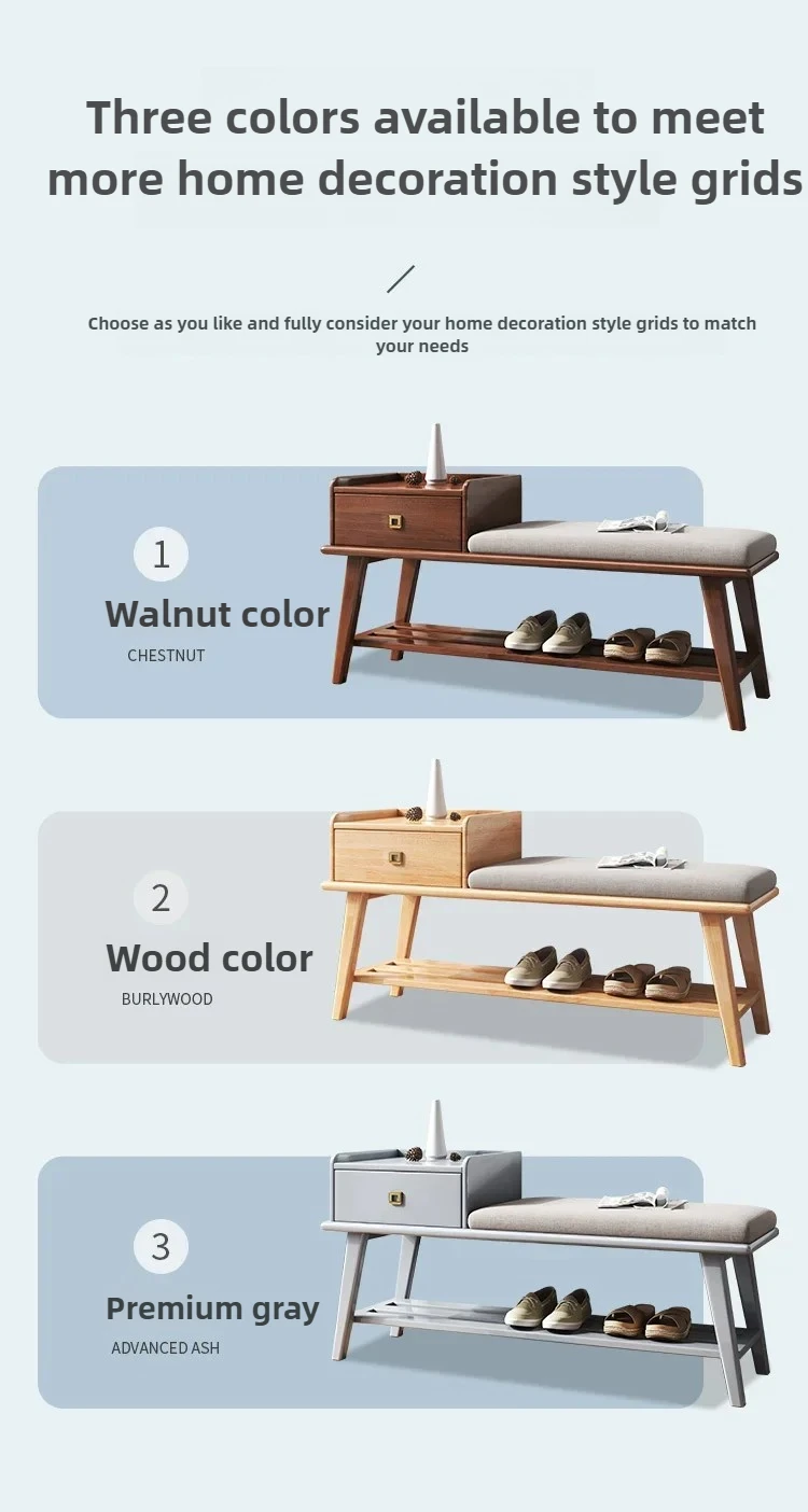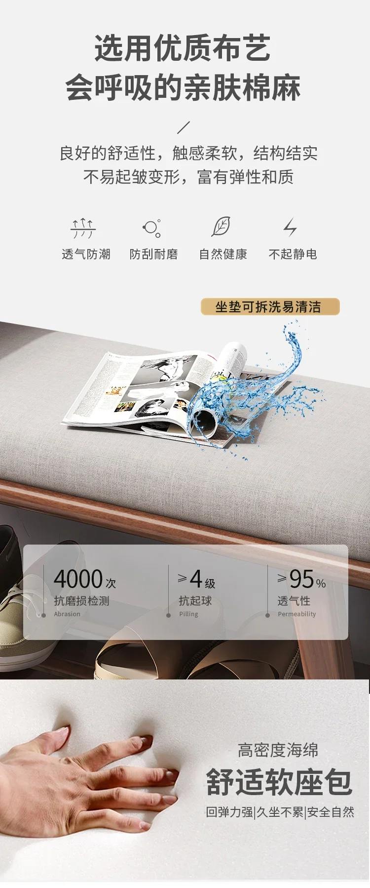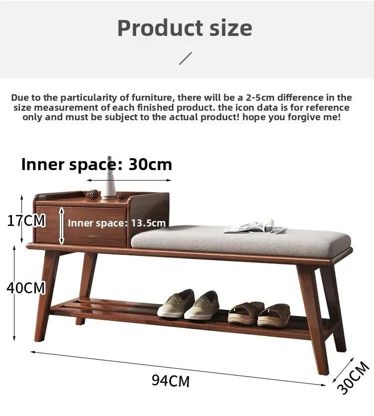 Description: This solid wood shoe storage cabinet with an integrated bench from NoEnName_Null is the perfect addition to any home. Expertly crafted and measuring 113x40x22, it offers a retro nostalgia and vintage feel. Its genuine leather material makes it durable and suitable for home decor, without the use of any highly concerned chemicals. Assembly is required for this customisable piece of living room furniture, model number HJL01 shoe changing stool # walnut, originating from mainland China and featuring a walnut pattern. This multi-functional piece can be used as a home stool and ottoman.