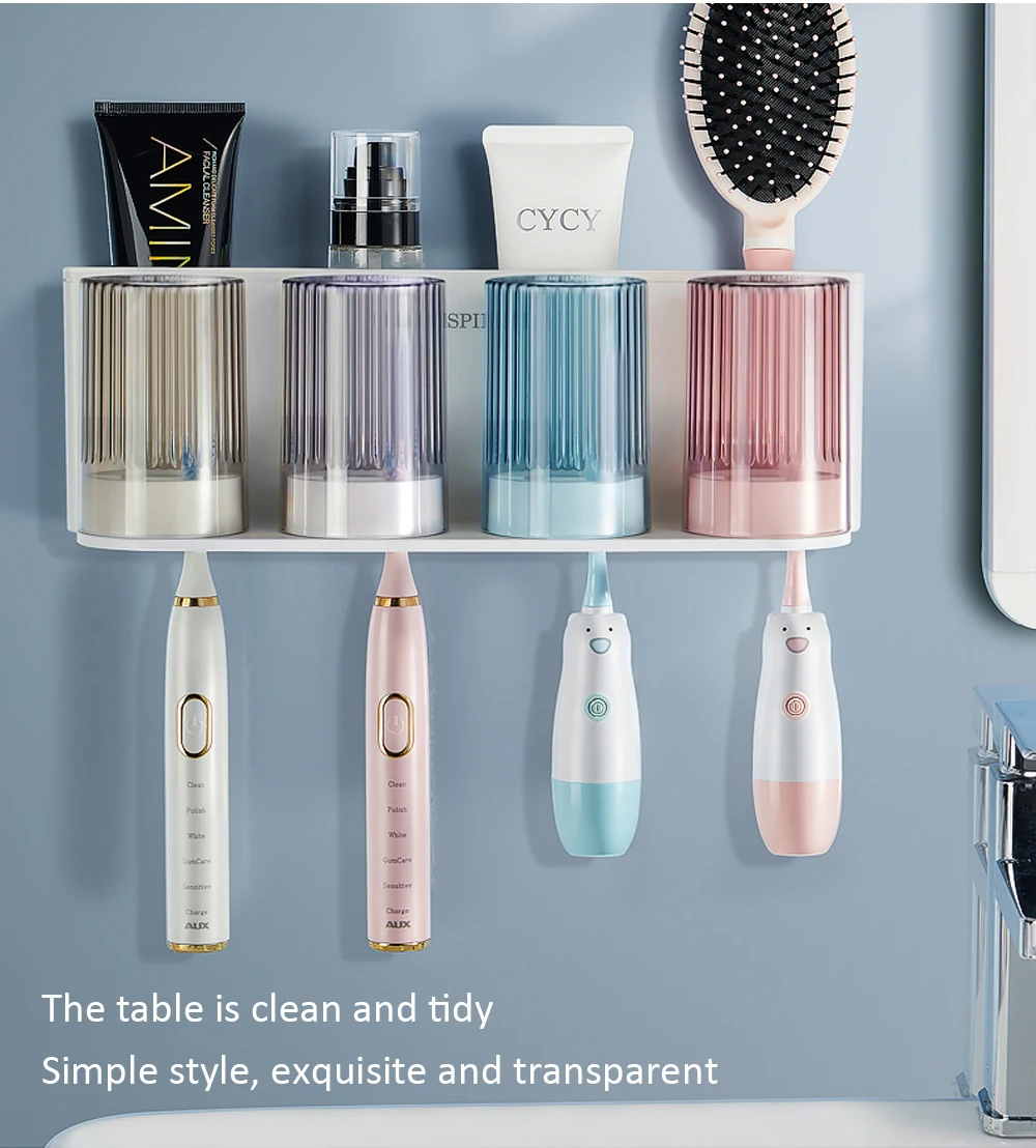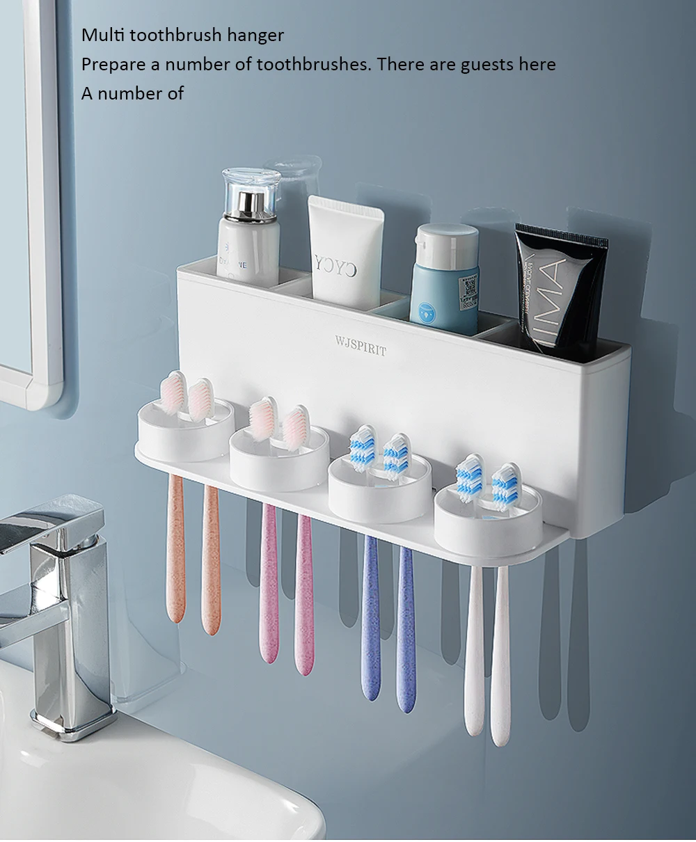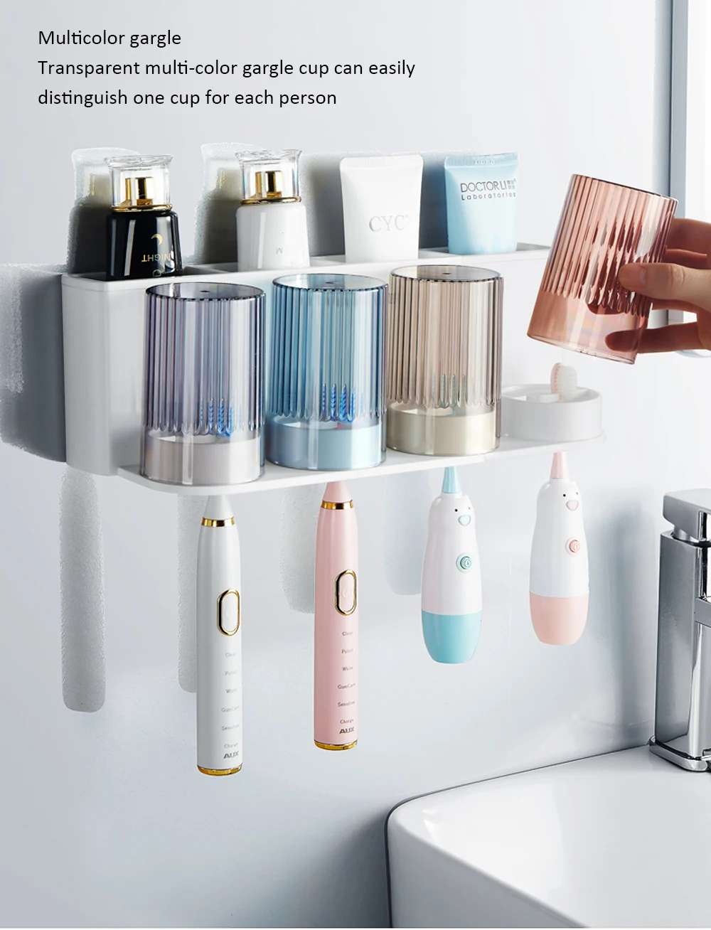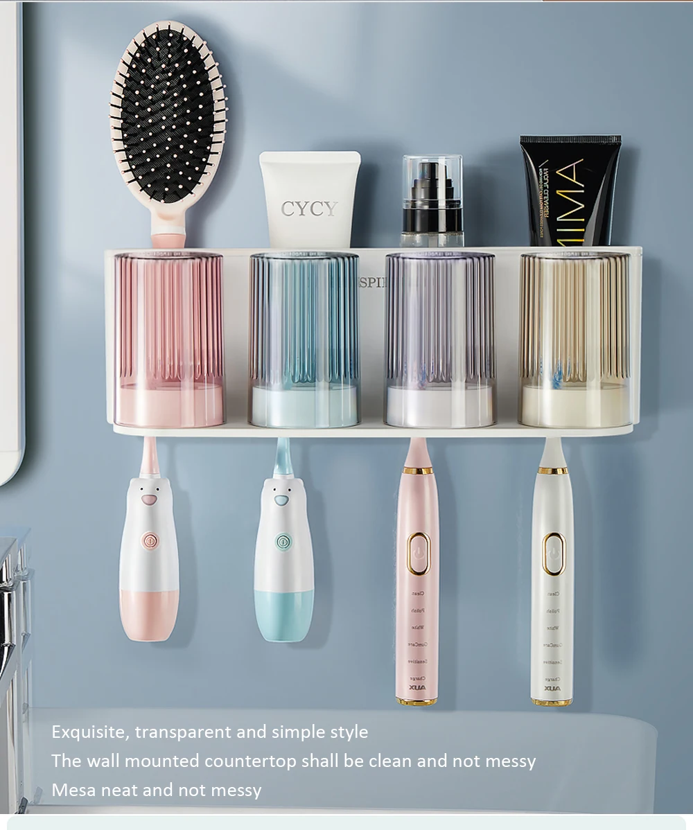 1. It's easy to clean and keep the bathroom tidy, and don't worry about clutter. The toothbrush slots can be used for ordinary, electric, and children's toothbrushes.
