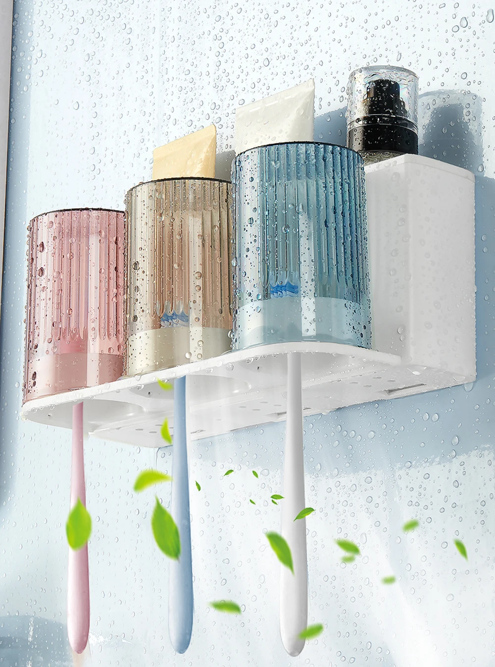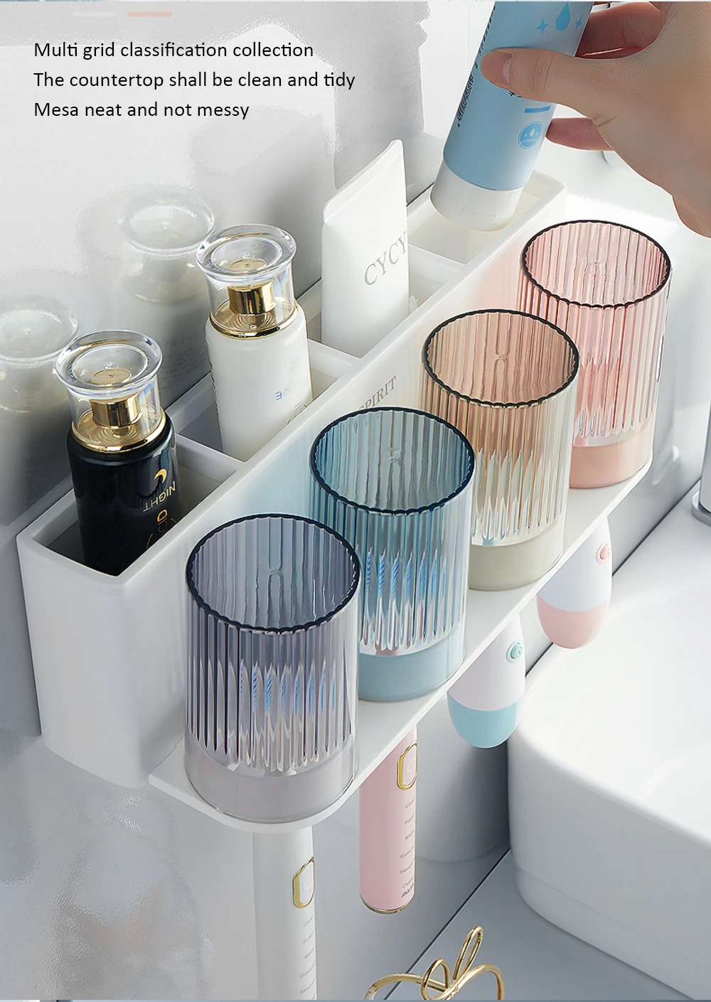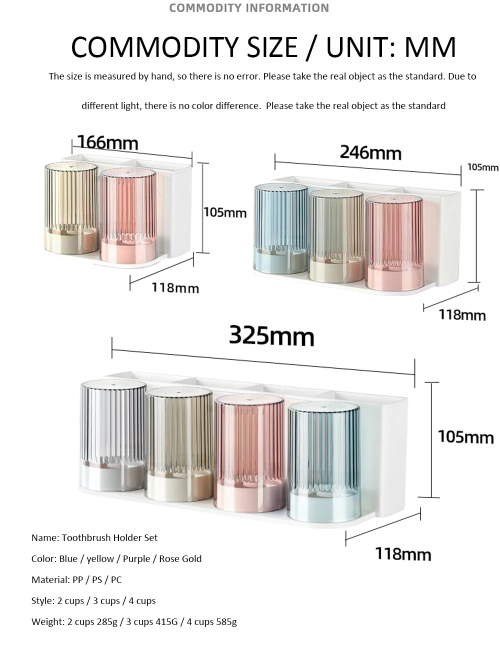1. It's easy to clean and keep the bathroom tidy, and don't worry about clutter. The toothbrush slots can be used for ordinary, electric, and children's toothbrushes.