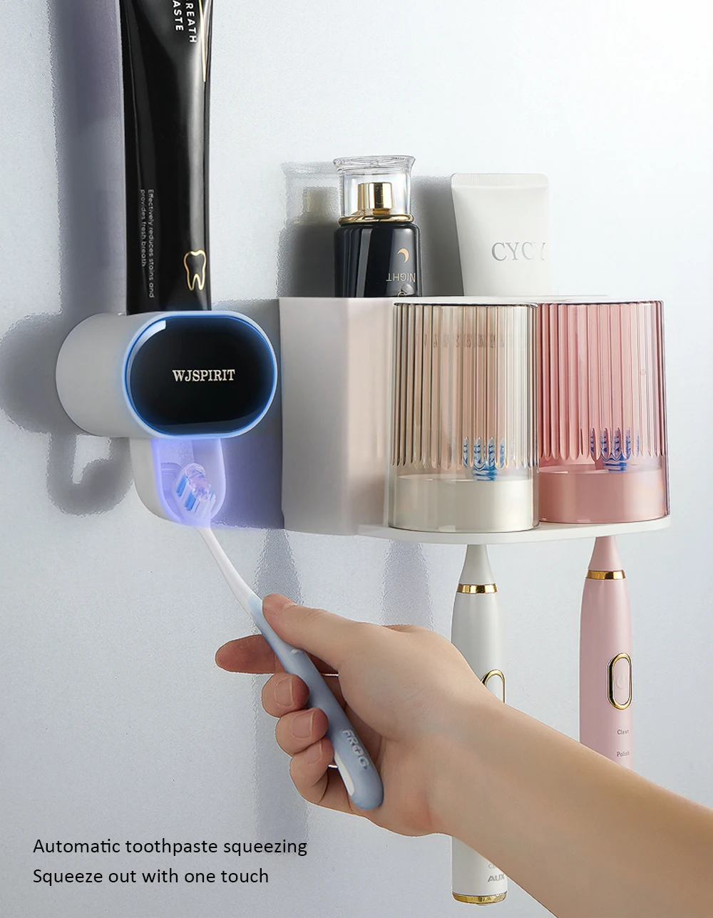 Support pour brosses à dents et dentifrice pour salle de bain. Toothpaste Dispenser Wall-Mounted automatic.