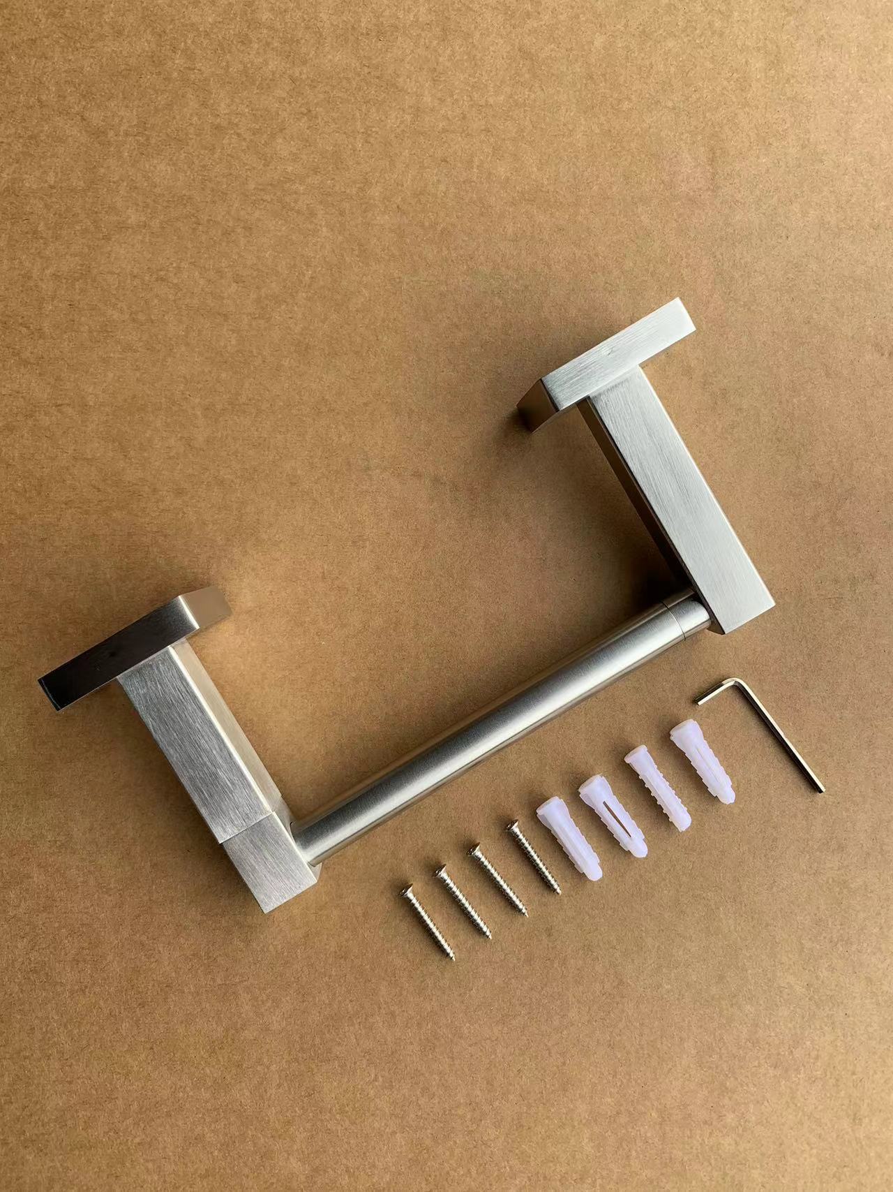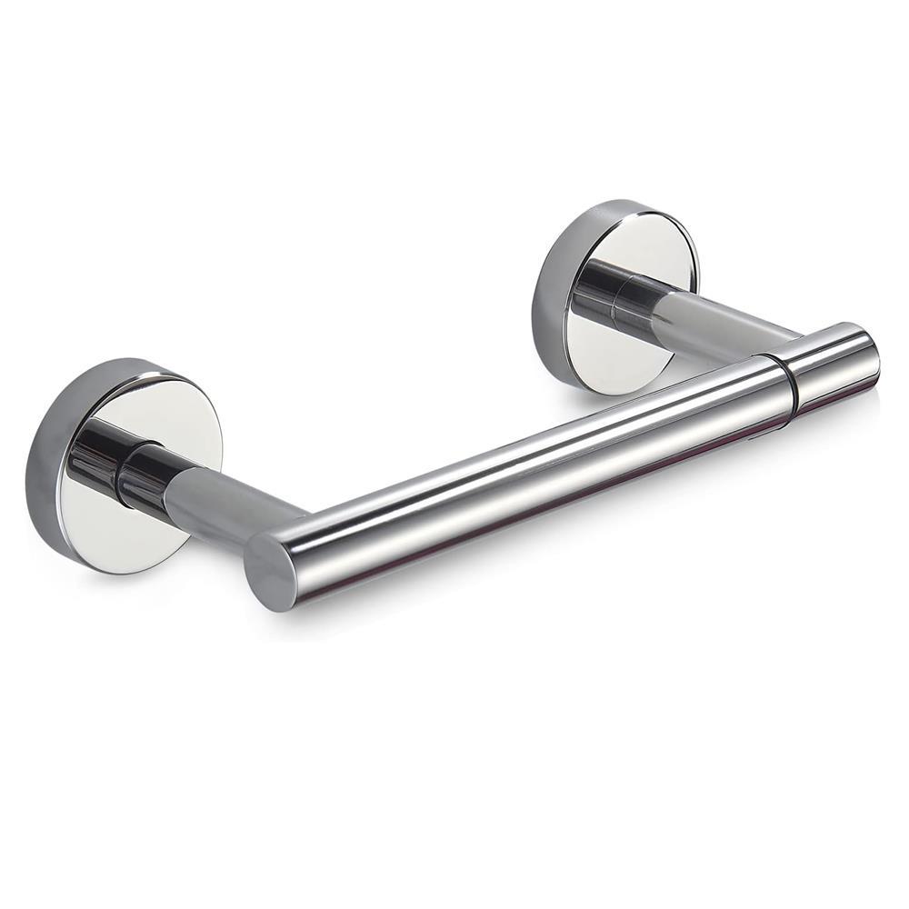 Porte-papier hygiénique mural en acier inoxydable pour toilettes.